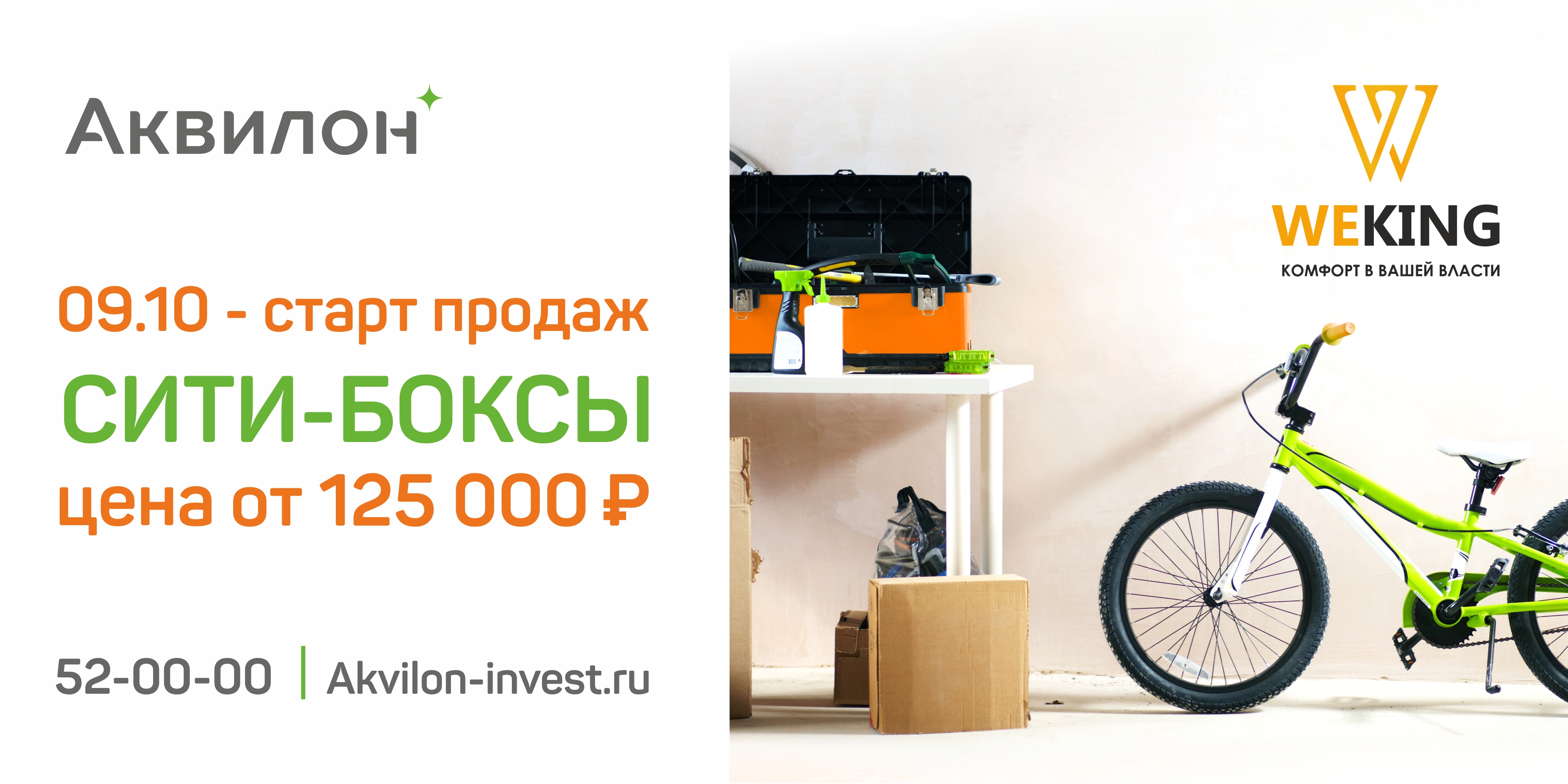 *Сроки проведения акции с 09.10.2020 по 31.12.2020 года. Подробности об организаторе акции, правилах ее проведения, размере скидок, сроках, месте и порядке её получения можно узнать по тел. 8 (8184) 52-00-00. Предложение ограничено количеством сити-боксов. Денежный эквивалент скидки не выплачивается. Скидка 20% рассчитана при 100% оплате сити-бокса и единовременной покупке в течение месяца сити-бокса и квартиры. Стоимость сити-бокса от 125 тыс. руб. рассчитана от площади 2,48 кв. м при 100% оплате и единовременной покупке в течение месяца сити-бокса и квартиры. Застройщик ООО СЗ «Аквилон Недвижимость». Многоквартирный жилой дом по ул. Орджоникидзе в городе Северодвинске. Кадастровый номер земельного участка: № 29:28:103090:81. Перевод: «WEKING» (Викинг) — «мы король». Проектная декларация на сайте https://наш.дом.рф