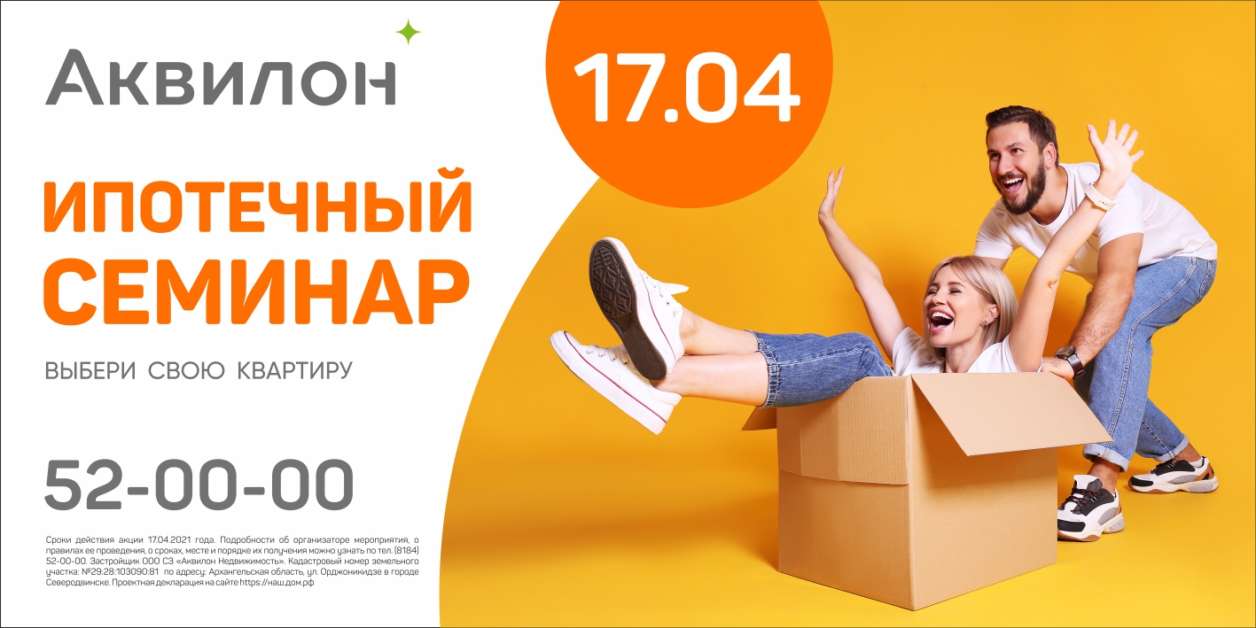 *Сроки действия акции 17.04.2021 года. Подробности об организаторе мероприятия, о правилах ее проведения, о сроках, месте и порядке их получения можно узнать по тел. (8184) 52-00-00. Застройщик ООО СЗ «Аквилон Недвижимость». Кадастровый номер земельного участка: № 29:28:103090:81 по адресу: Архангельская область, ул. Орджоникидзе в городе Северодвинске. Проектная декларация на сайте https://наш.дом.рф