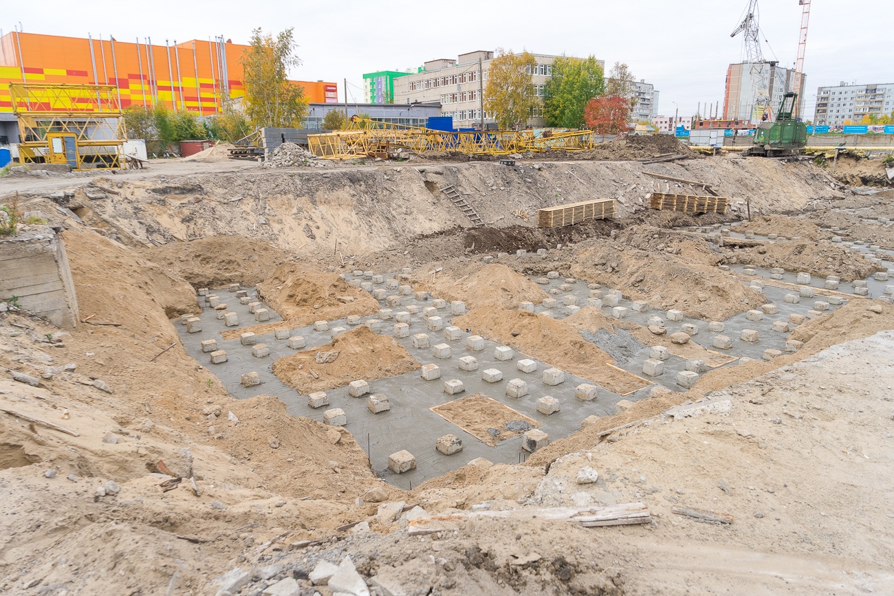 В настоящее время на стройплощадке завершено погружение свай, ведется устройство ростверка.