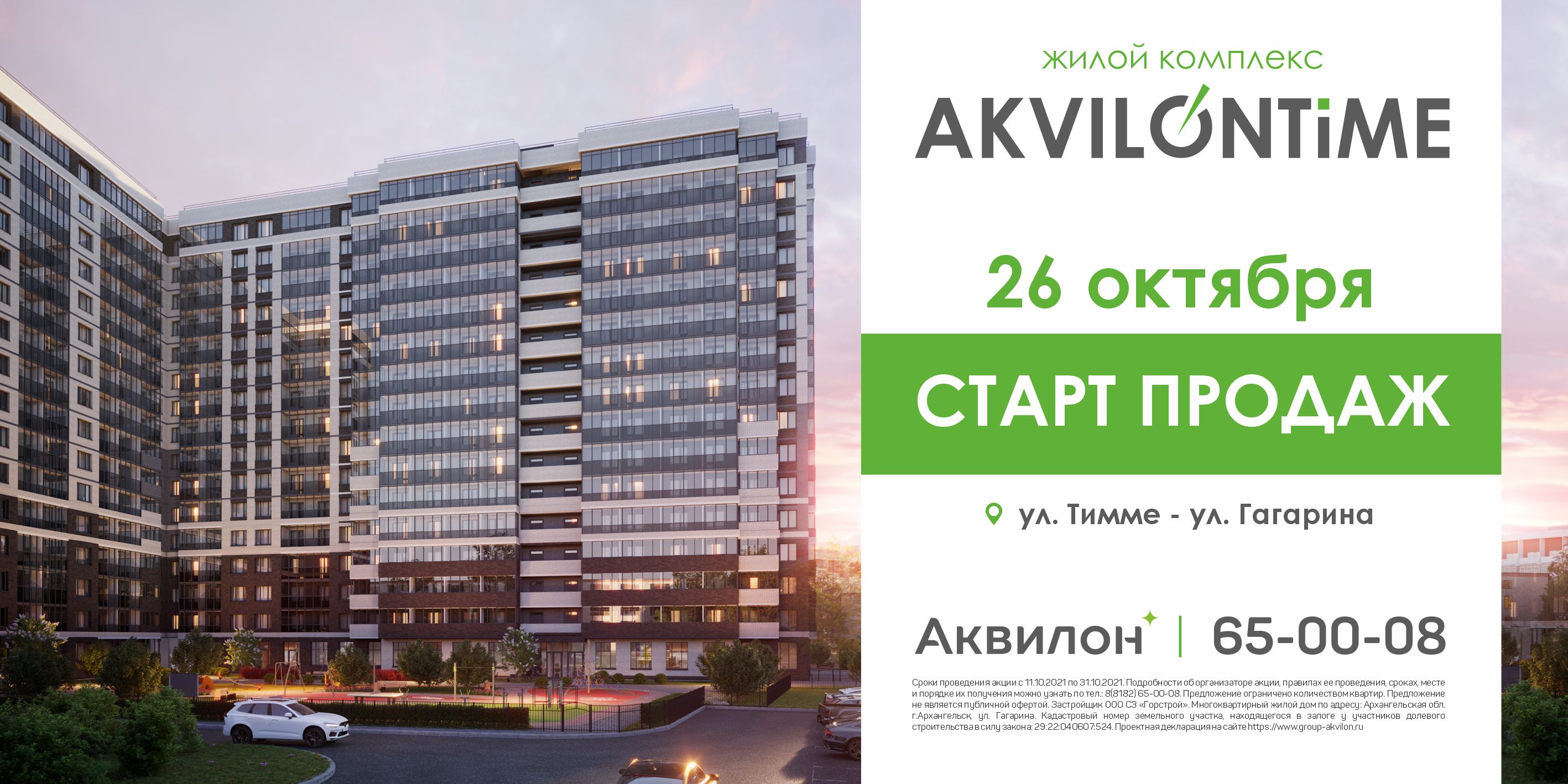 26 октября в Архангельске стартуют продажи ЖК «AKVILONTiME»*.
