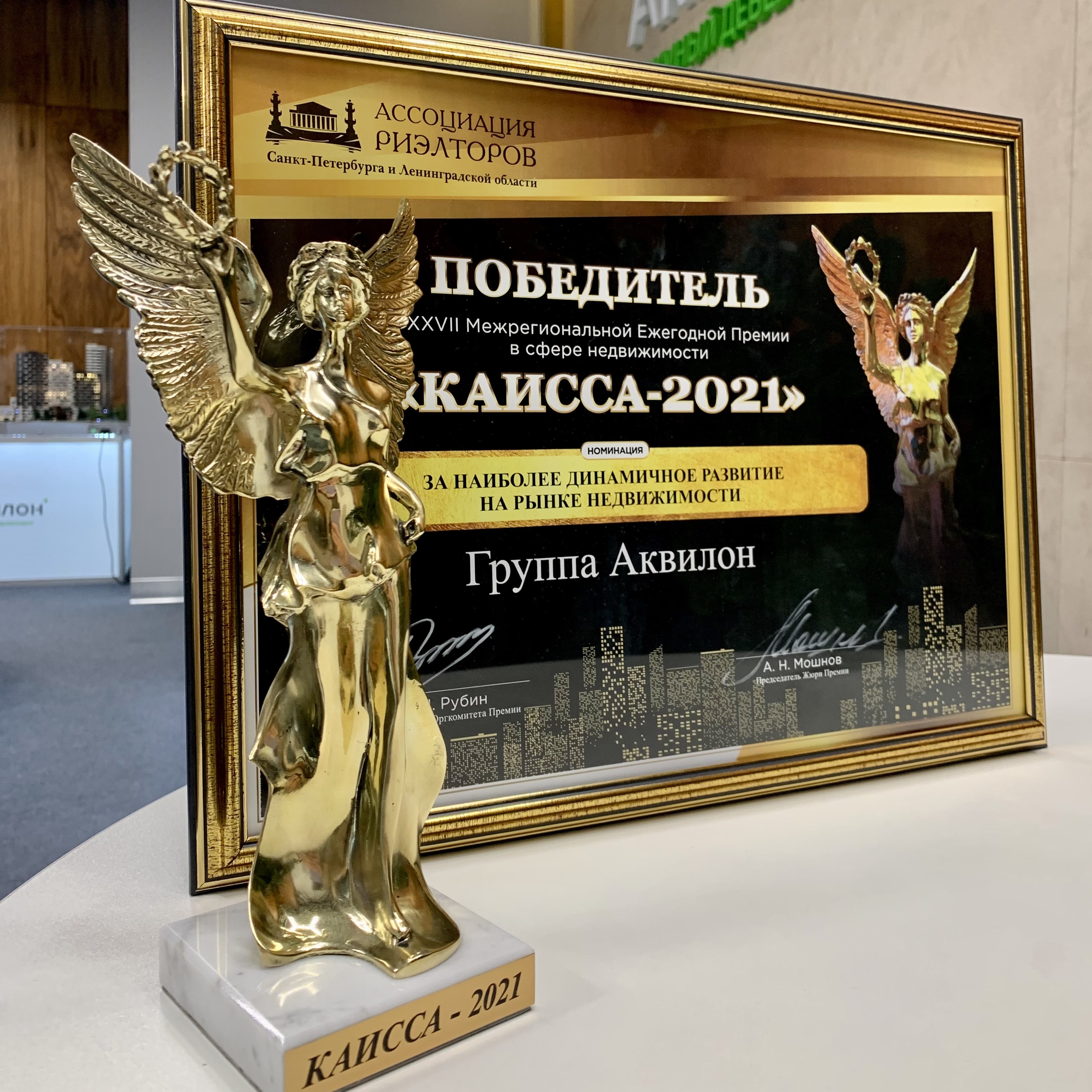 Группа Аквилон стала победителем межрегионального конкурса в сфере недвижимости «КАИССА-2021» в номинации «За наиболее динамичное развитие на рынке недвижимости».